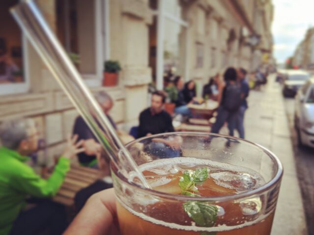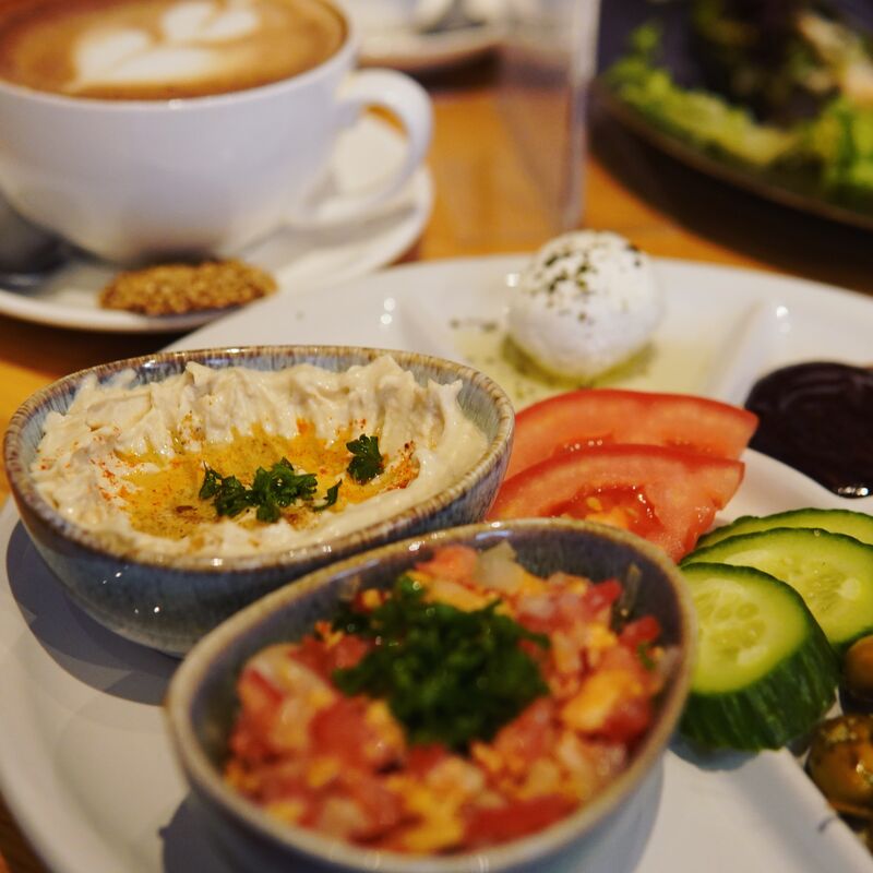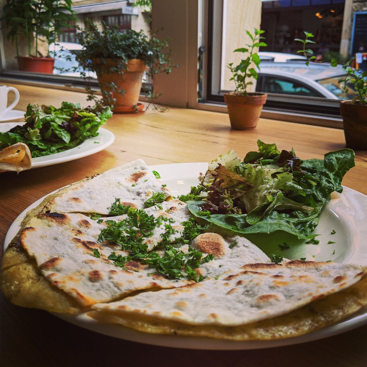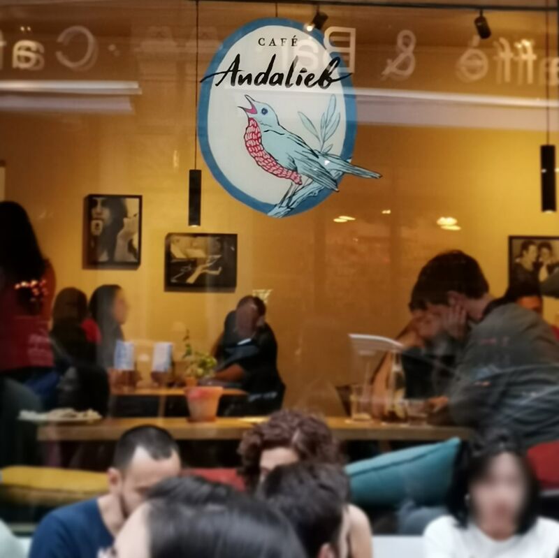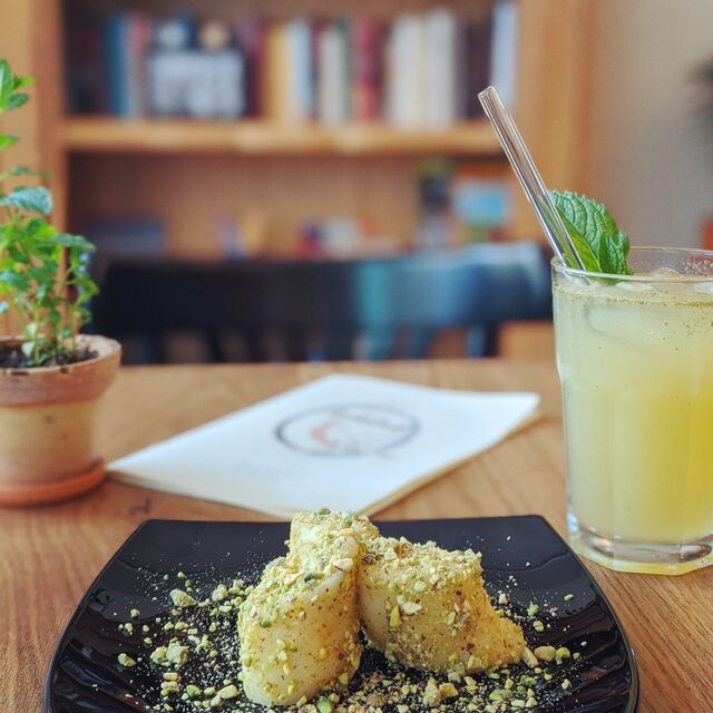 "Ein von jungen Syrern geführtes Café fernab der Klischees: Frisch zubereitete, weniger bekannte orientalische Spezialitäten zu jeder Tageszeit (Frühstückmenüs, Manaqish, Fruchtcocktails, Süßigkeiten und Getränke); lokal gerösteter Kaffee; Kulturabende mit live Musik; ausgewählte Bücher; Ausstellungen."